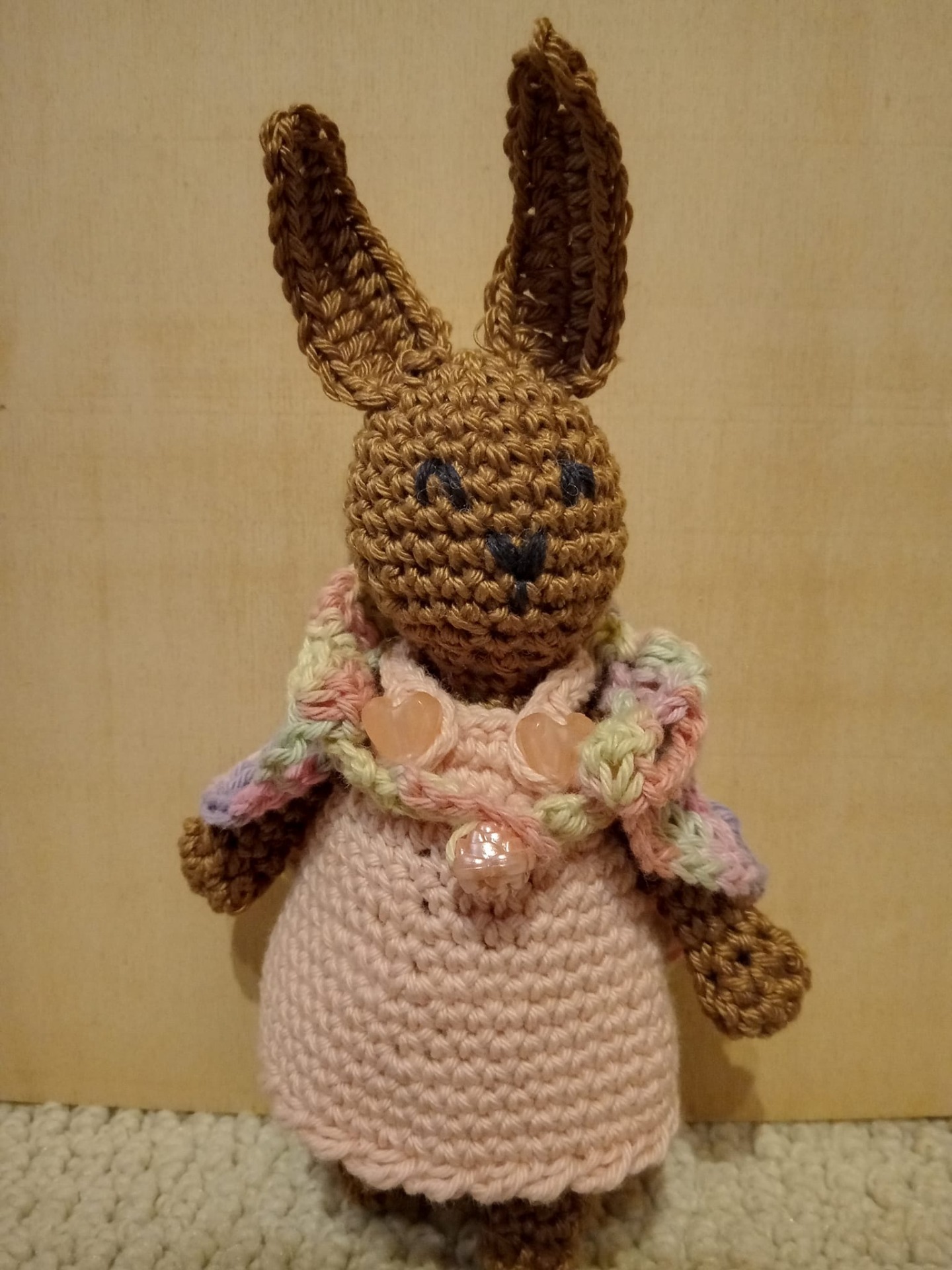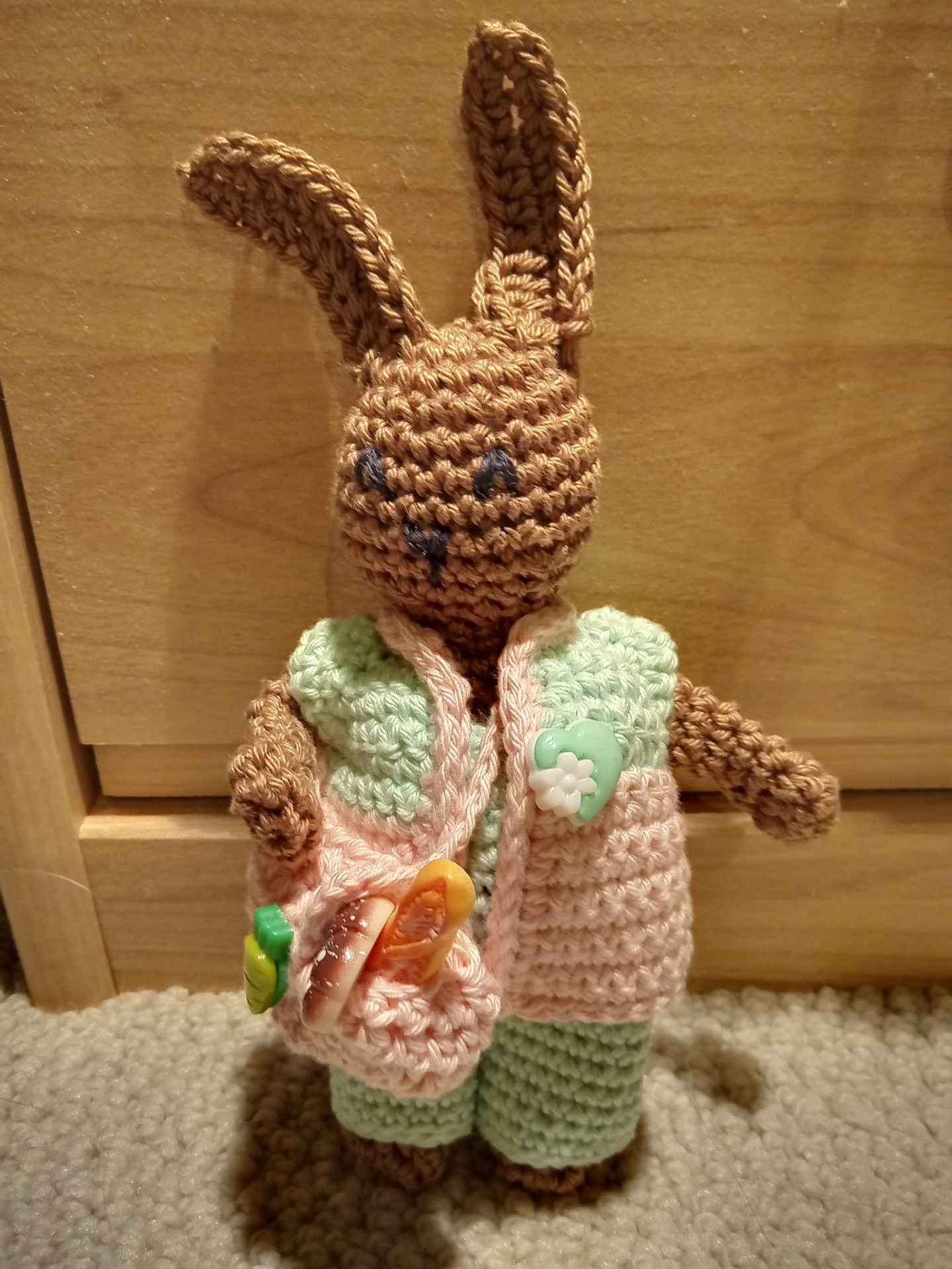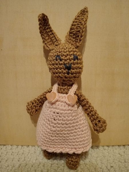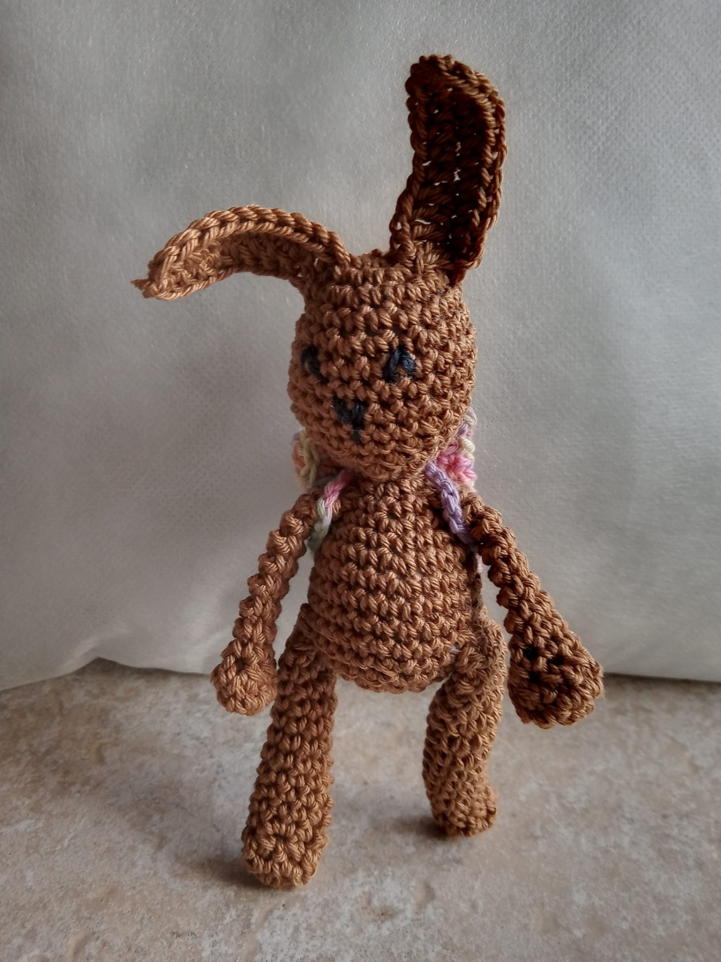 Das kleine Häsla Fluffy kam nur mit einem Rucksack in Pastelltönen an...