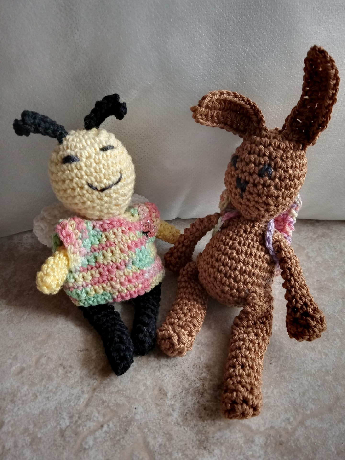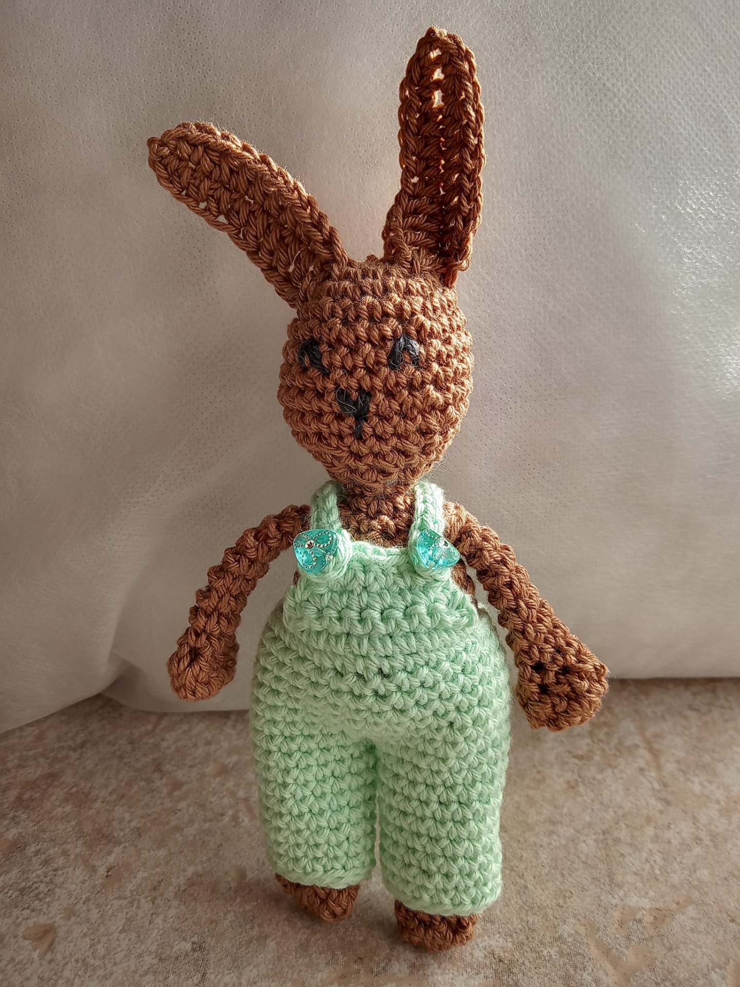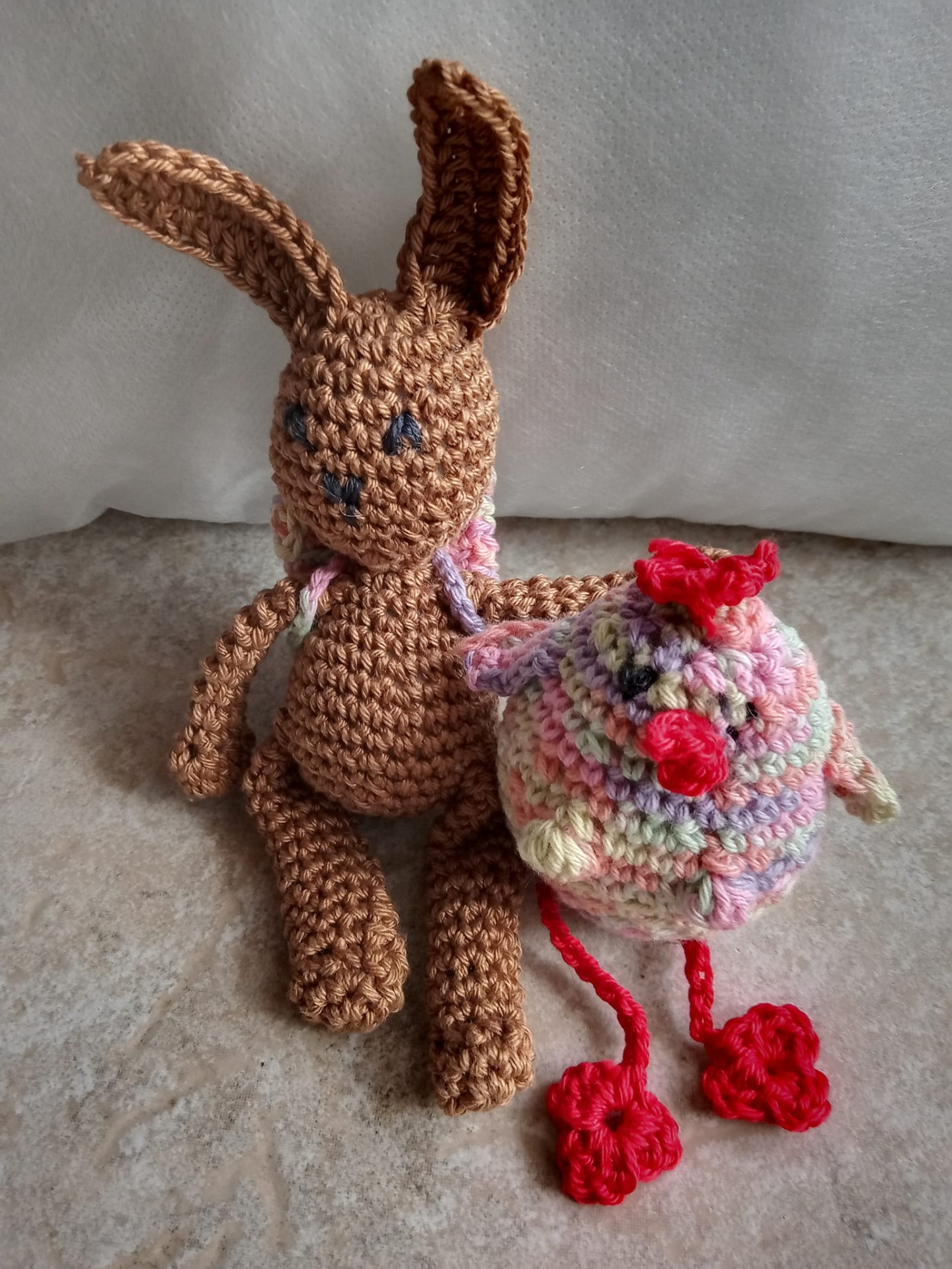Das kleine Häsla Fluffy kam nur mit einem Rucksack in Pastelltönen an...