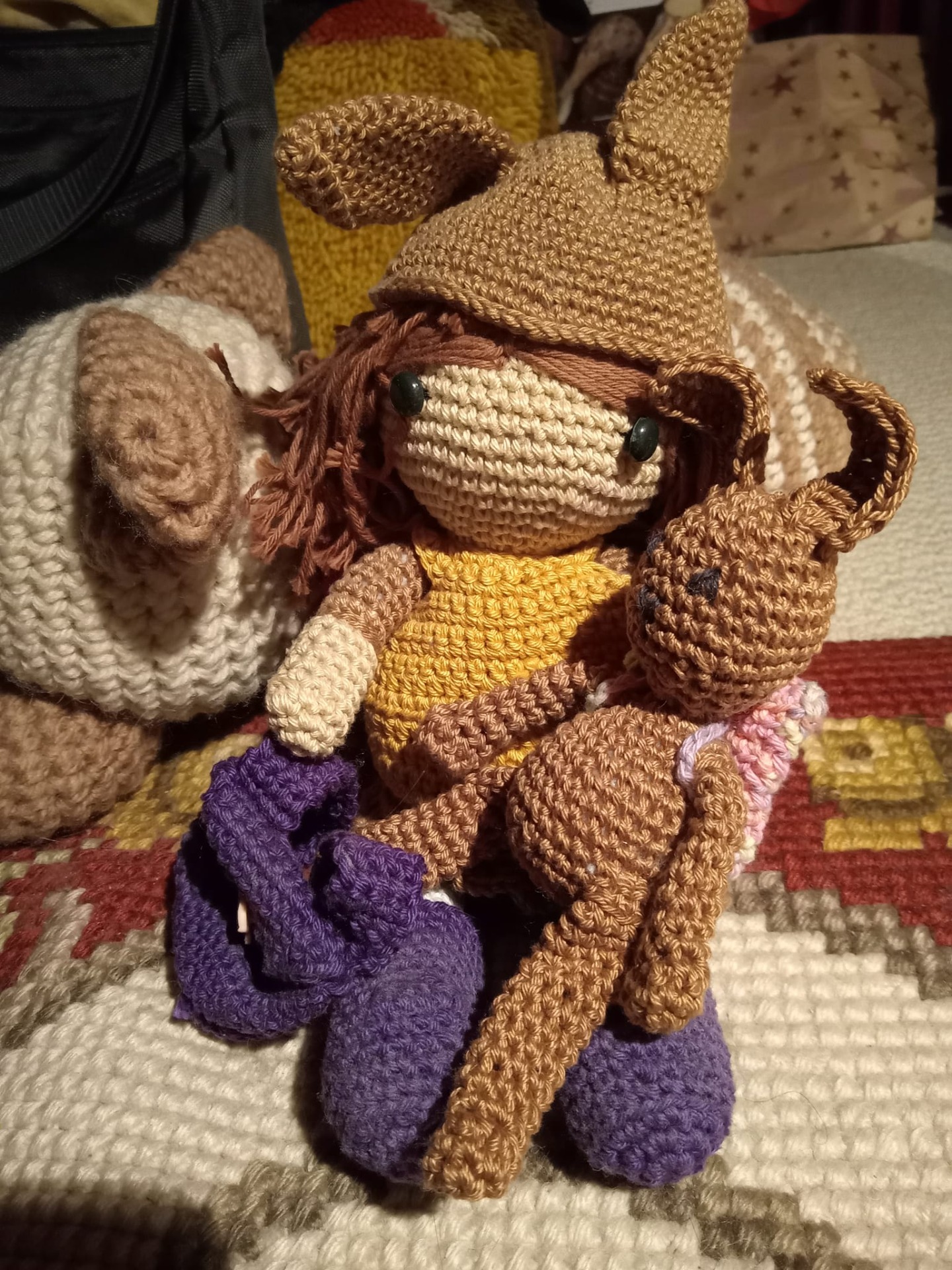 Nachtrag: Fluffy hat Kayla seine Weste geschenkt, dafür hat sie ihm eine neue gehäkelt... er ist in der "Rüblagang"...